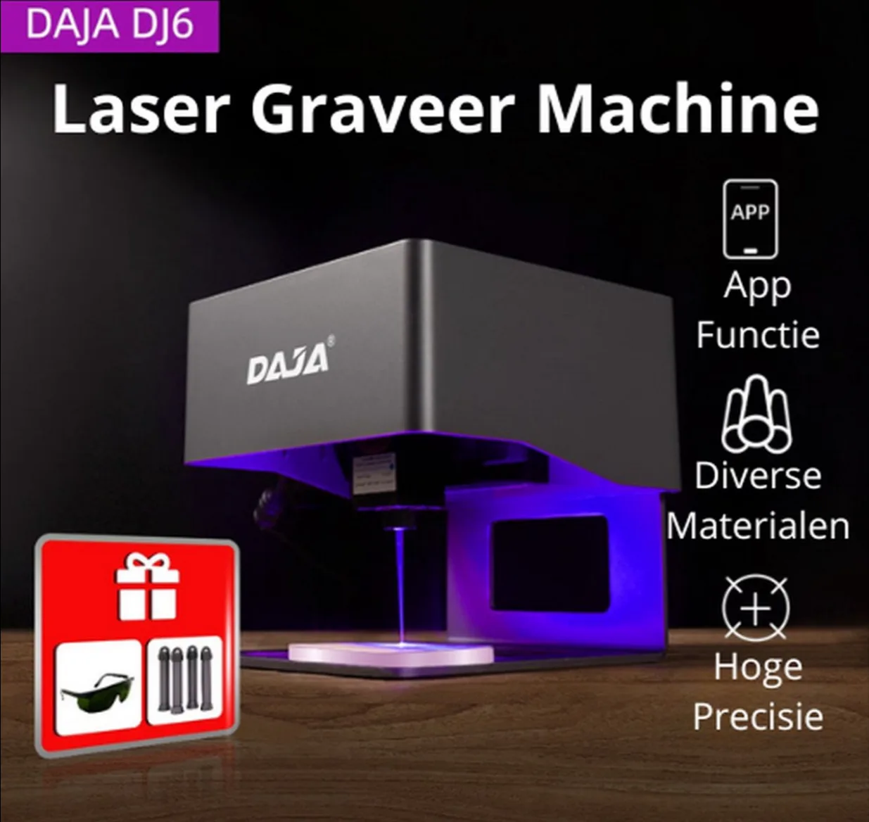 Functionaliteiten & Specificaties De DAJA DJ6 is een kleine, lichte lasergraveermachine die ideaal is voor hobbyisten. •Formaat: 167x167x165mm •Graveeroppervlak: 80 x 80 mm •Laservermogen: 3W…