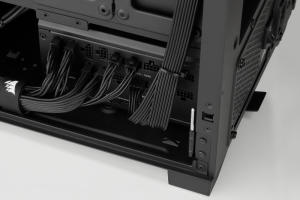 CORSAIR has tested the RMx SHIFT in all current CORSAIR cases to guarantee compatibility, and has already updated the online PC Builder database with the most popular third party cases. CORSAIR is hard at work verifying compatibility with most third party cases and will continue to add that information to the PC Builder database over the coming weeks. As a general guideline, a minimum clearance of 30mm of open space to the side of the bottom compartment is necessary to accommodate the side-positioned connector panel.